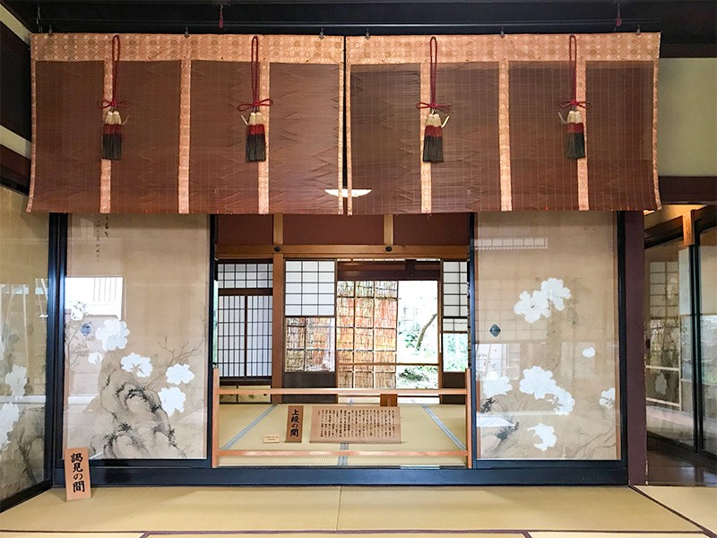 • 野村家の邸宅内には、加賀藩のお抱え絵師、狩野派の佐々木泉景(せんけい)の襖絵や、贅を尽くした総檜造りの格天井の「上段の間」など見所がいっぱいです。