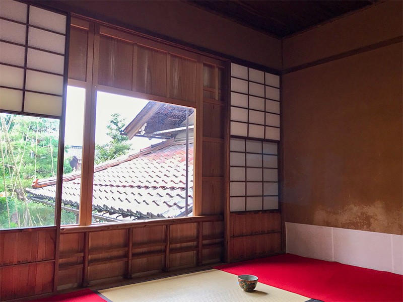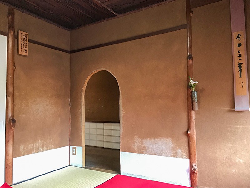 • 茶室は廊下の右手。天井は神代杉の一枚板という珍しい造りだそうです。
