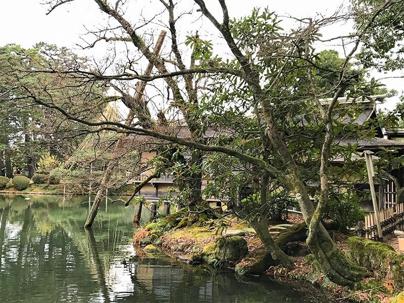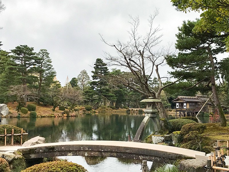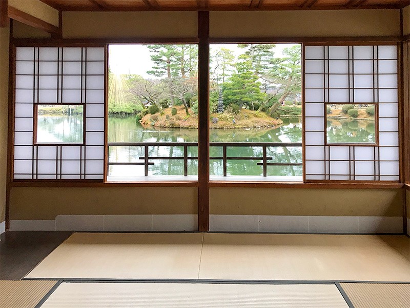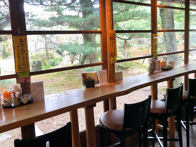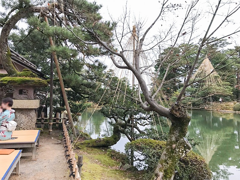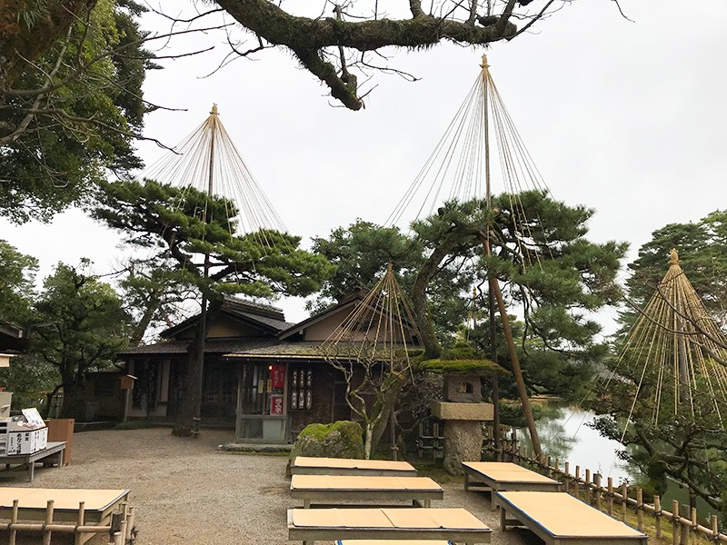 兼六園内にはいくつかお食事処があります。その中でも霞が池のほとりに建つ「内橋亭」は雪吊りを眺めながら一服できるちょっと穴場な場所なんです。