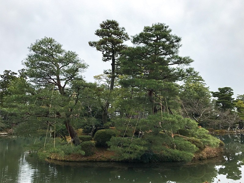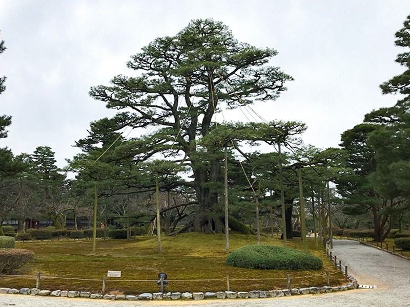 金沢の「雪吊り」はこの「唐崎松」から始まるんです。おそらく「雪吊り」で最も有名な木ではないでしょうか。