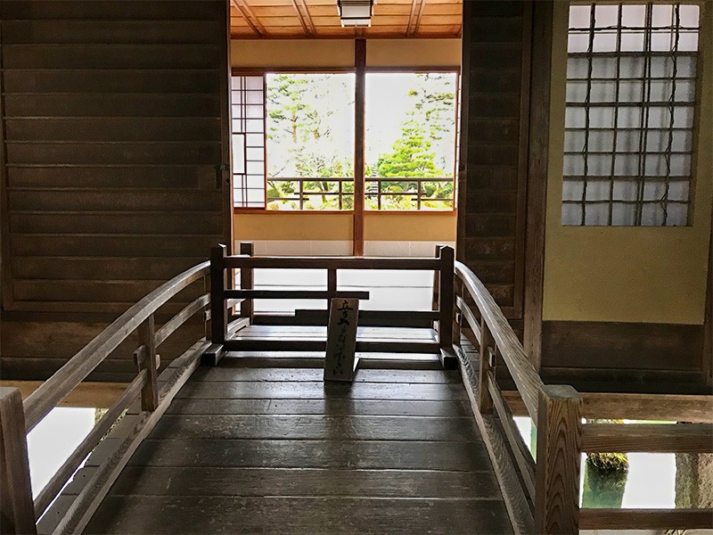 橋の向こうにある部屋は霞が池の上に建ってるんです。