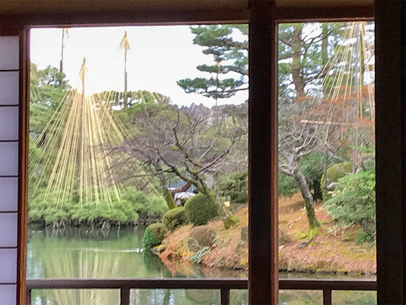 【14:30】兼六園内の「内橋亭」で雪吊りを眺めながらの一服