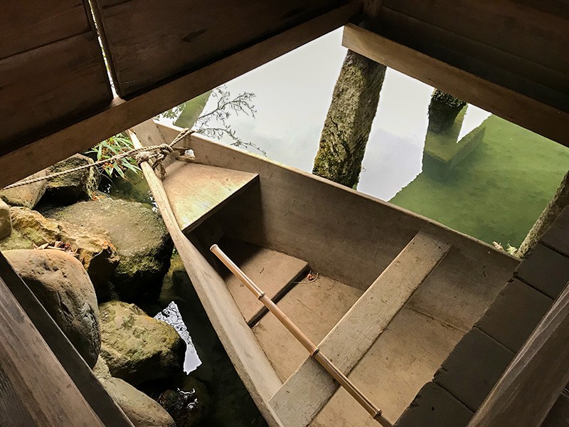 • 橋の下にはなんと舟がありました。場所的には見せるためのものでもなさそうですし、実際に使ってる感があったんですね。気になってお店の方に聞いたら、庭師さんが手入れの時に実際に使っているそうです!なるほど。